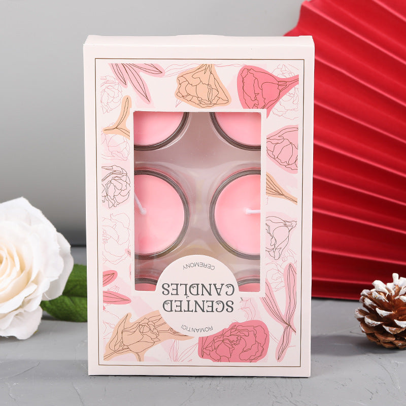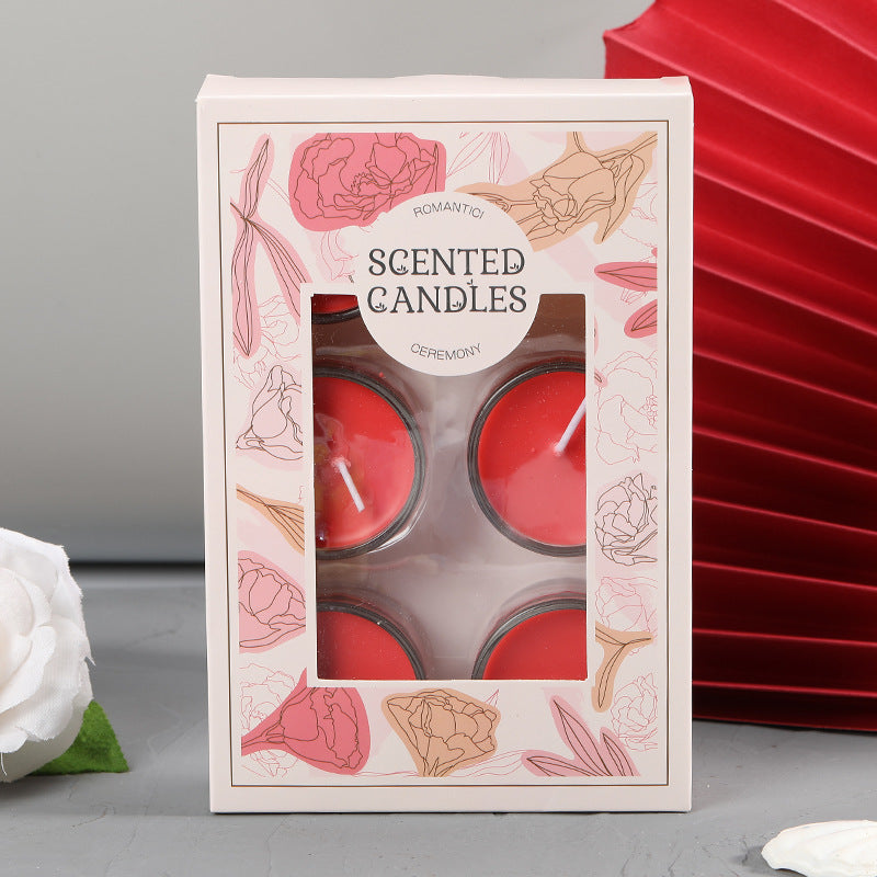 6 per pack Size: 2in / 5.3cm in diameter; 1.3in / 3.3cm in height Weight: 80g per candle Burning Time: 7 hours per candle Color: white, red, pink The high temperature...